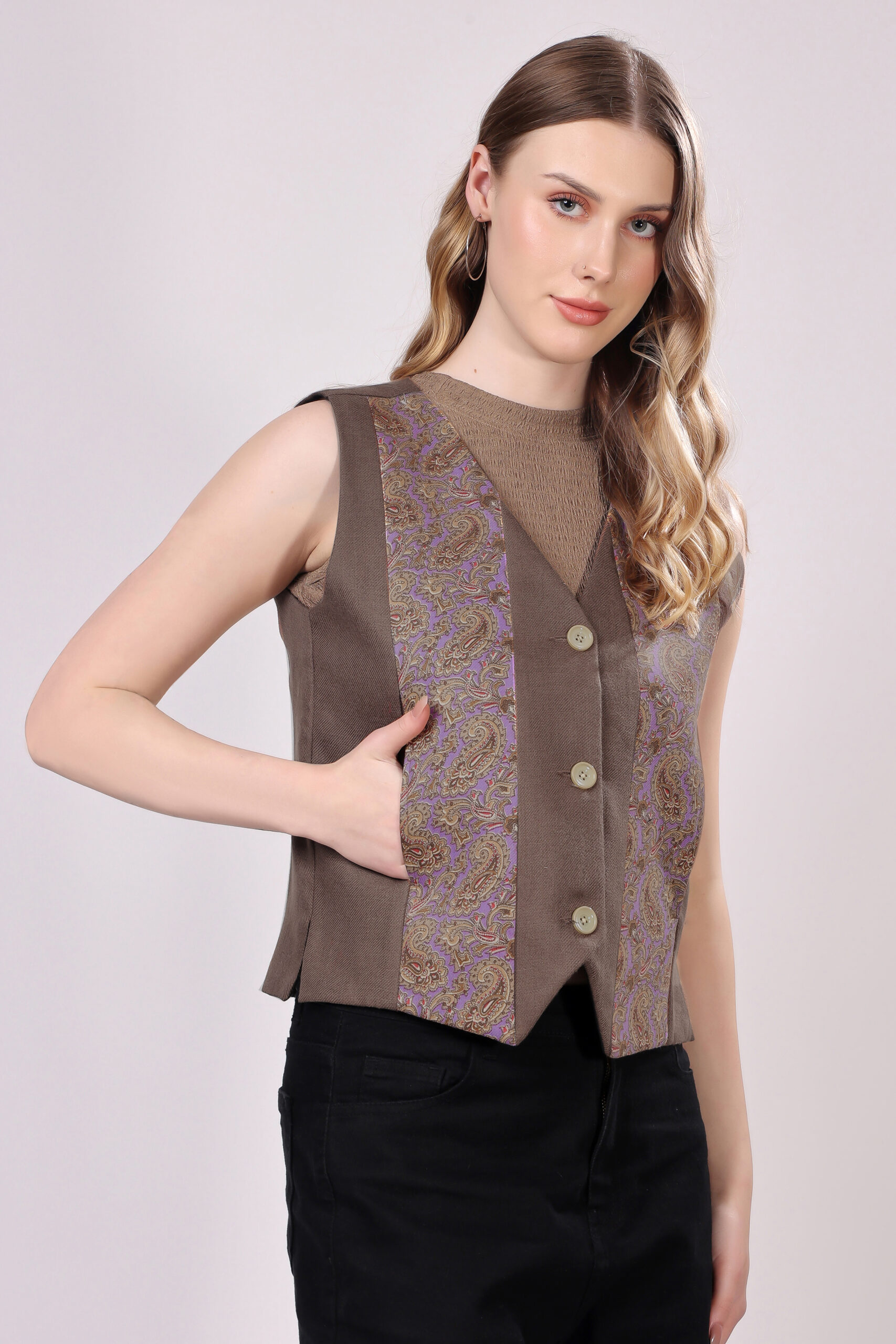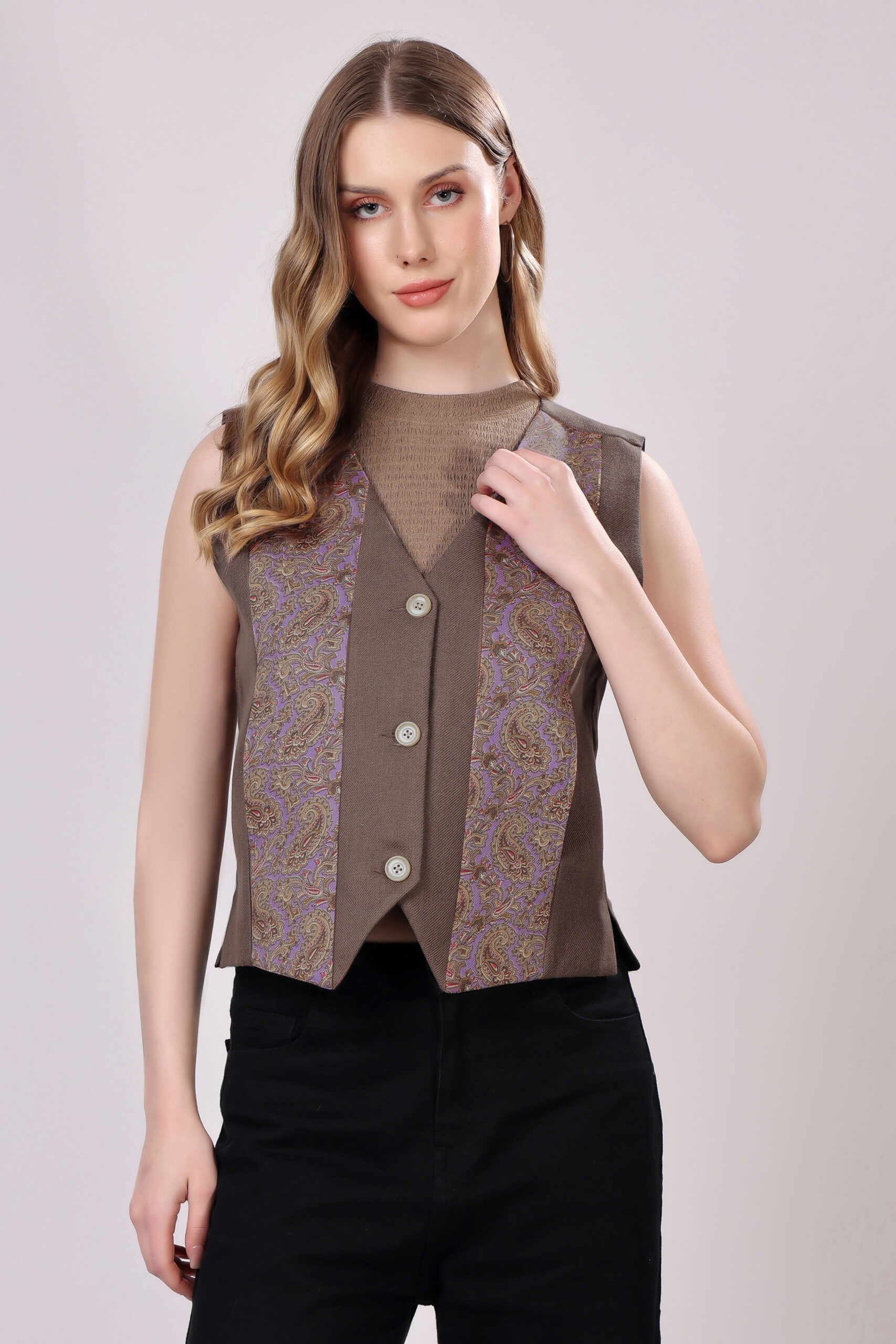 This waistcoat offers a beautiful blend of warmth and elegance, making it a chic addition for stylish winter ensembles.
