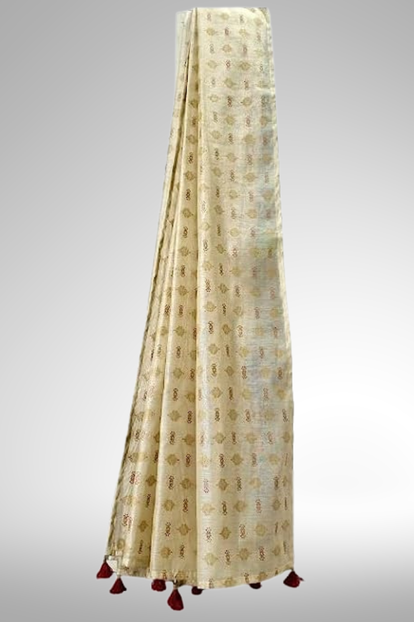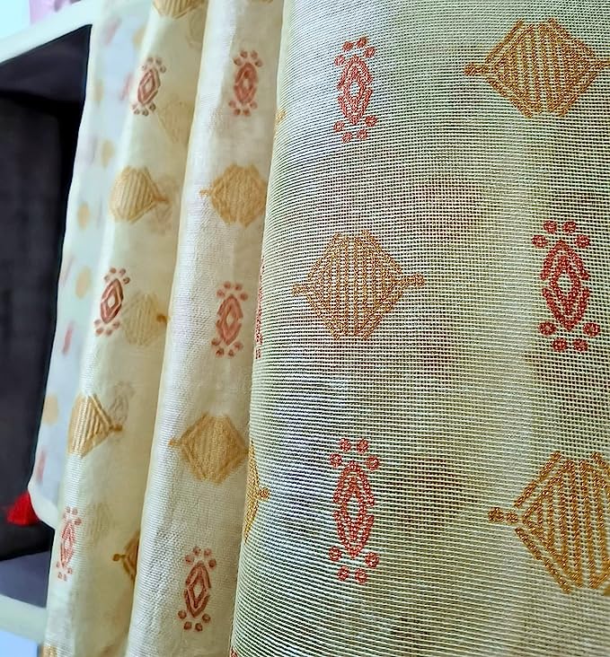 Golden Printed Off-White Festive Dupatta with Tassels