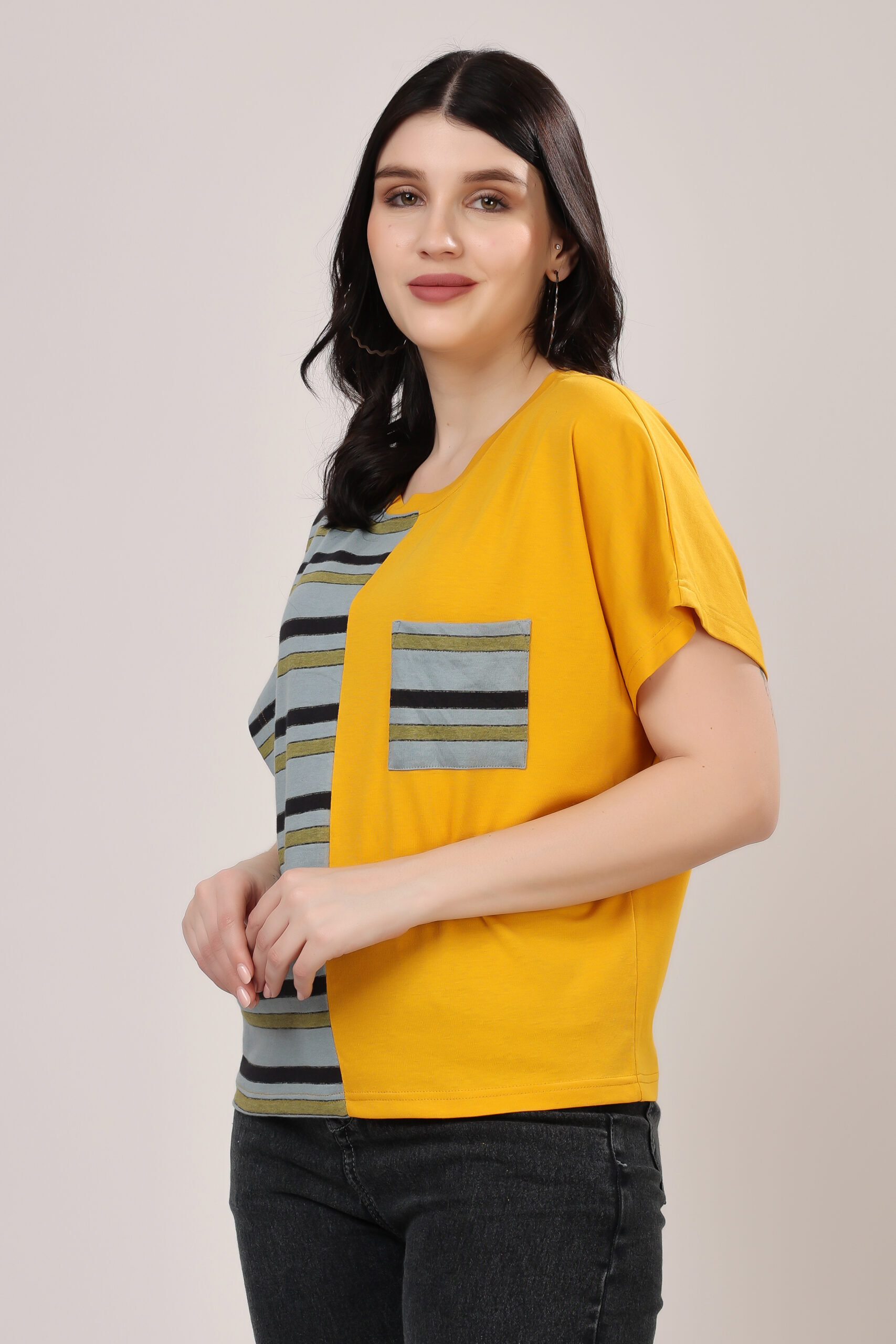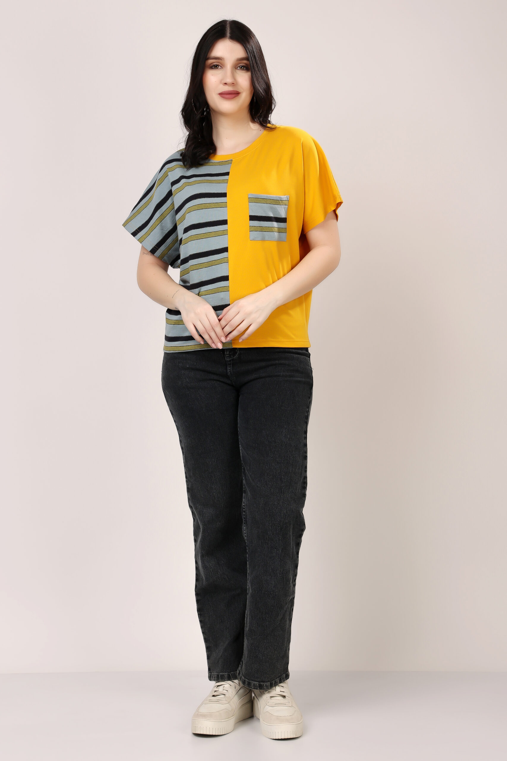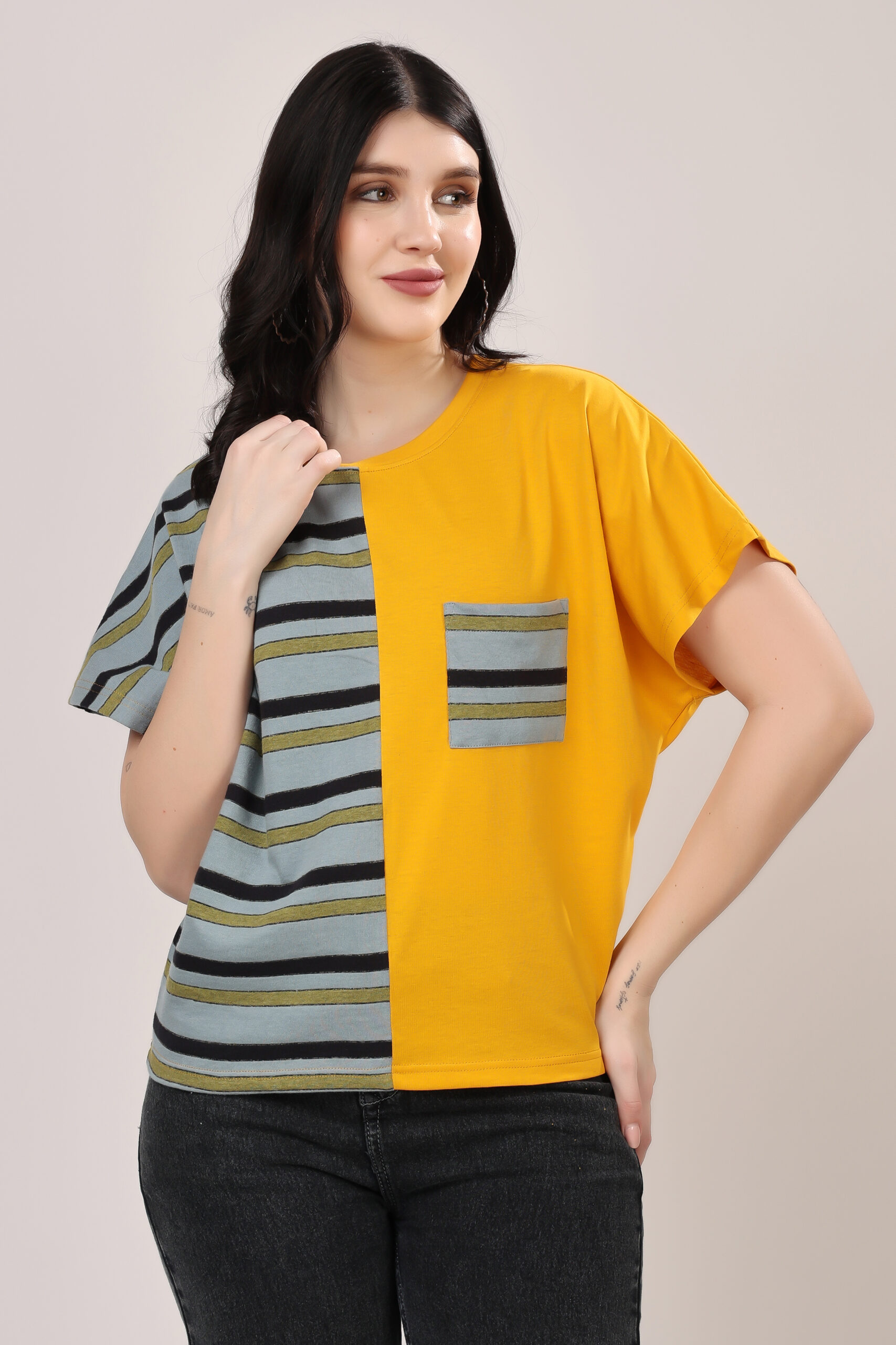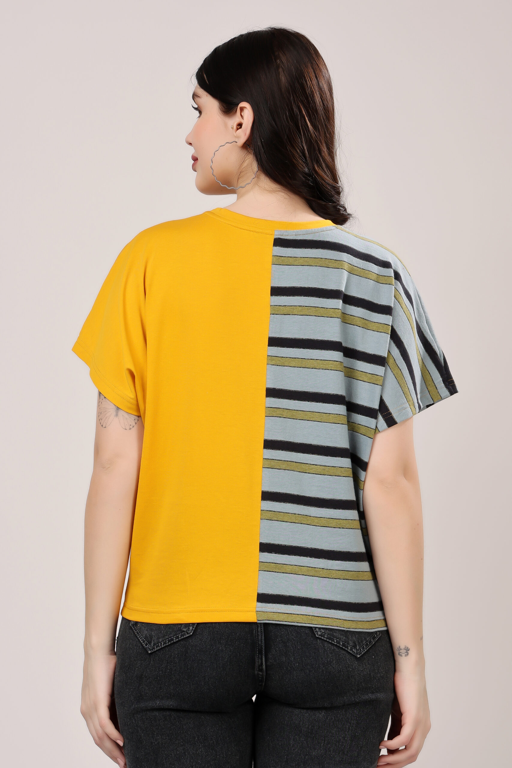 Half & Half Striped Panel T-Shirt for Women