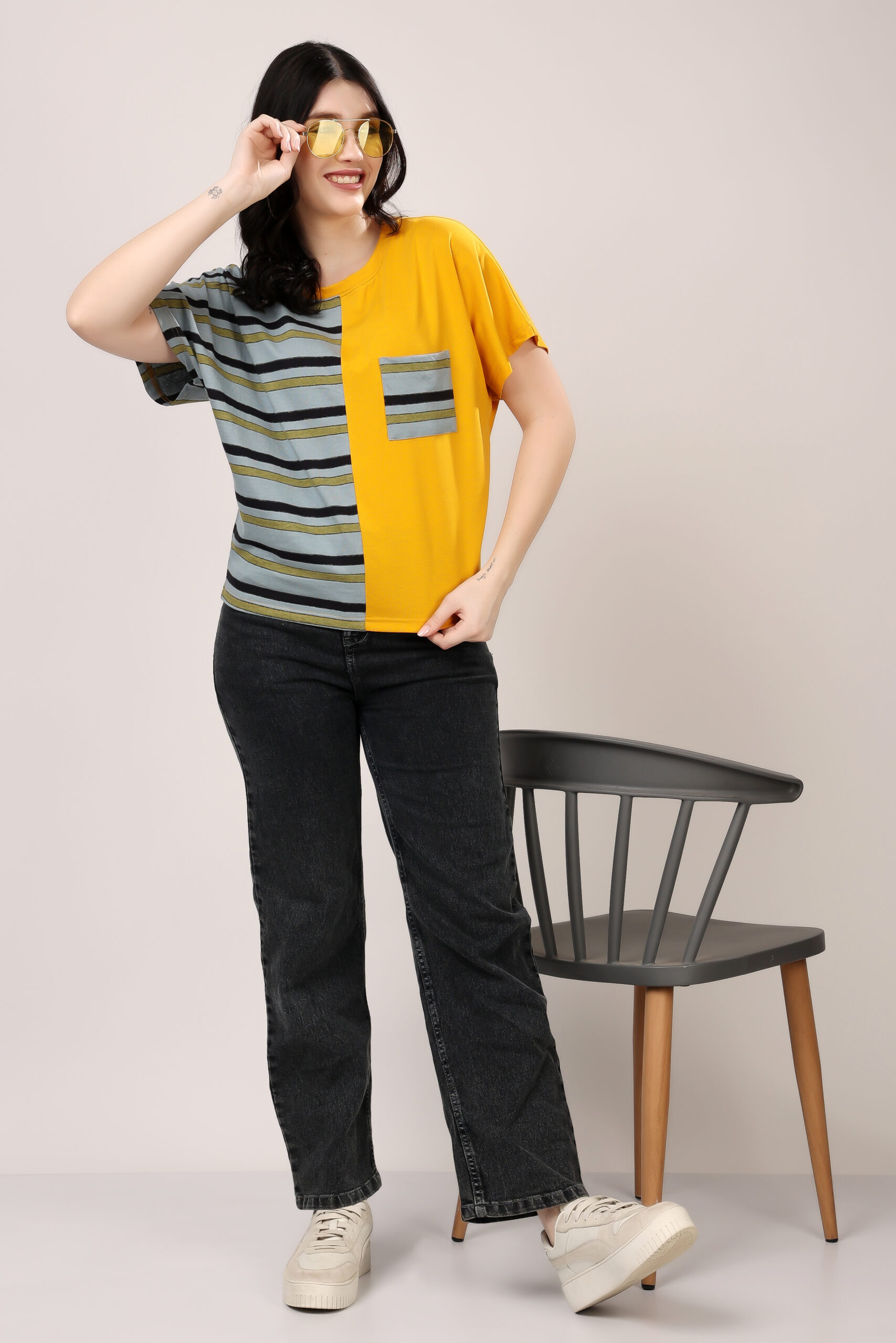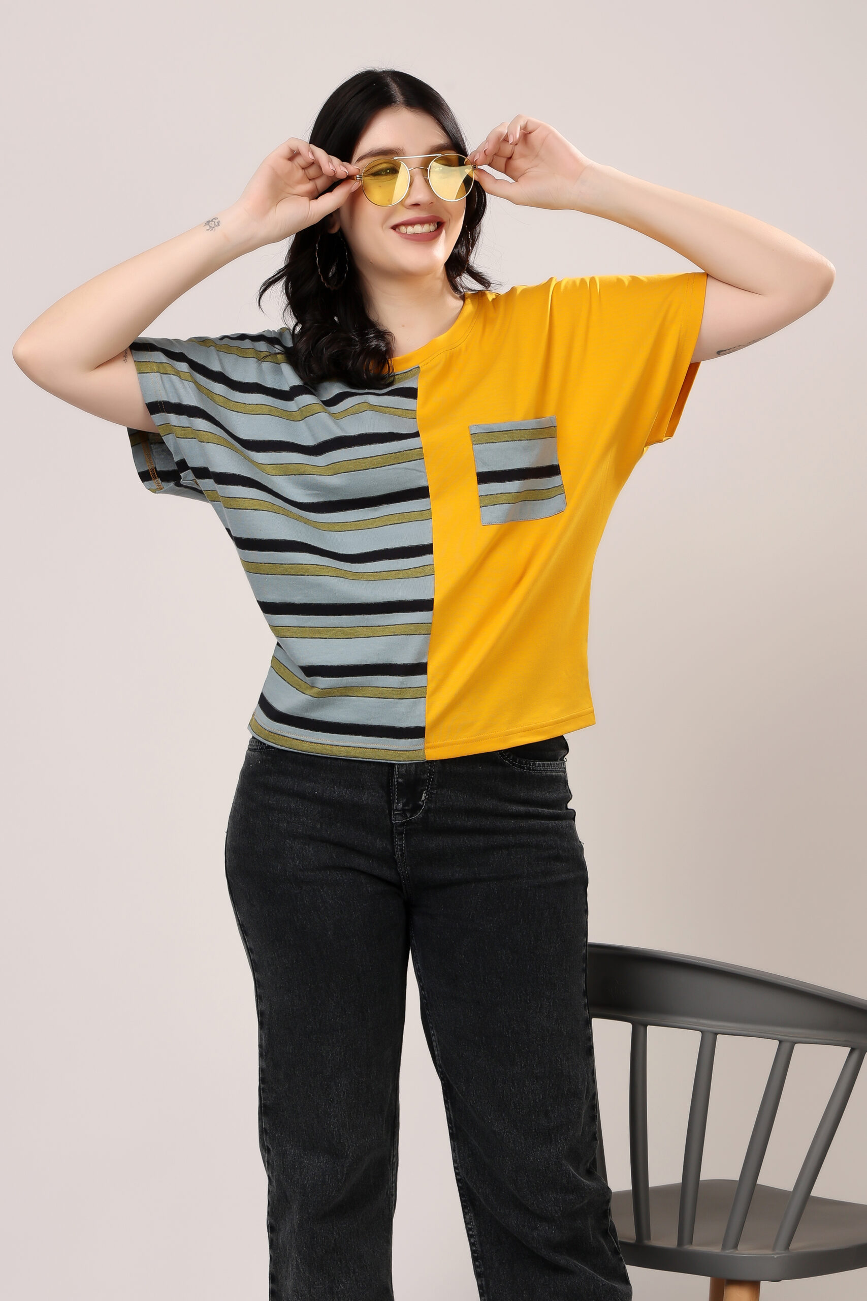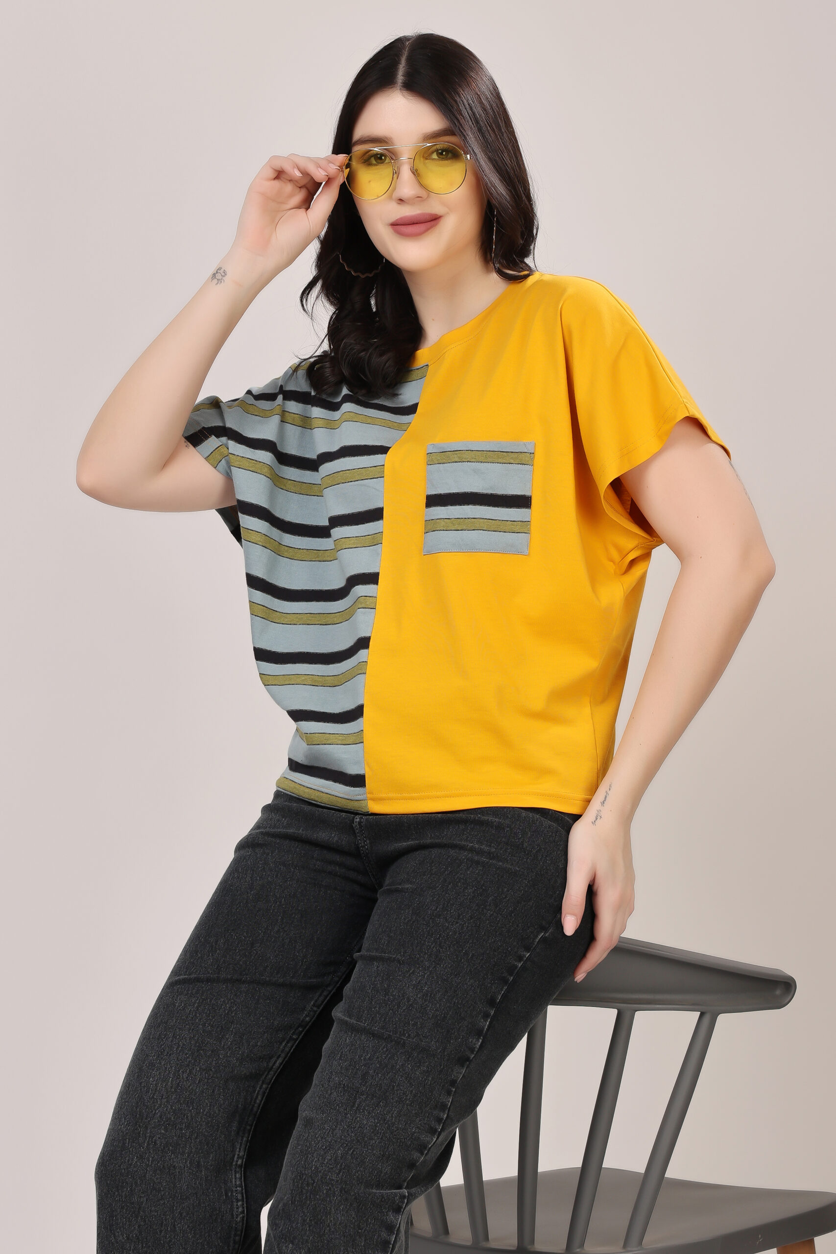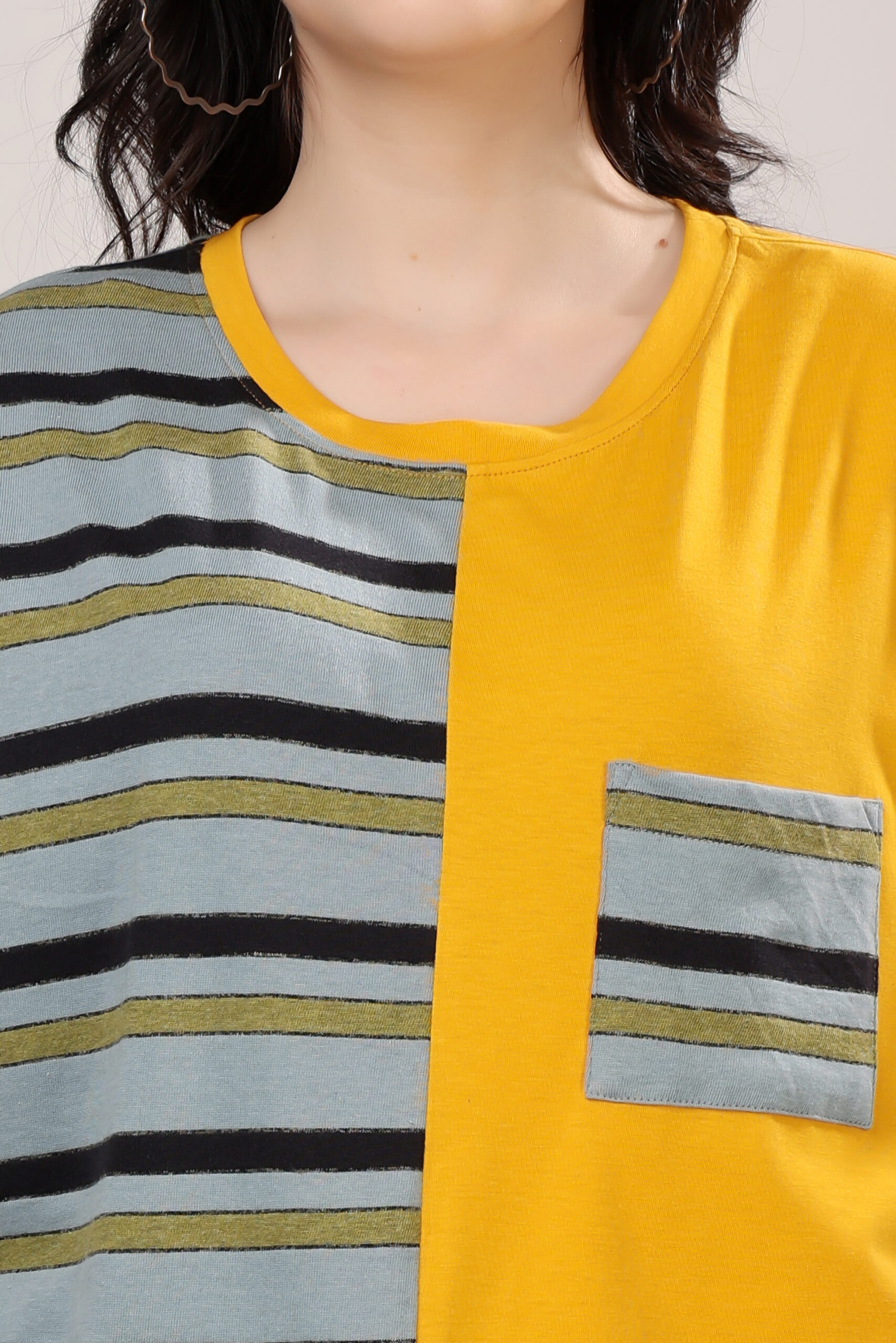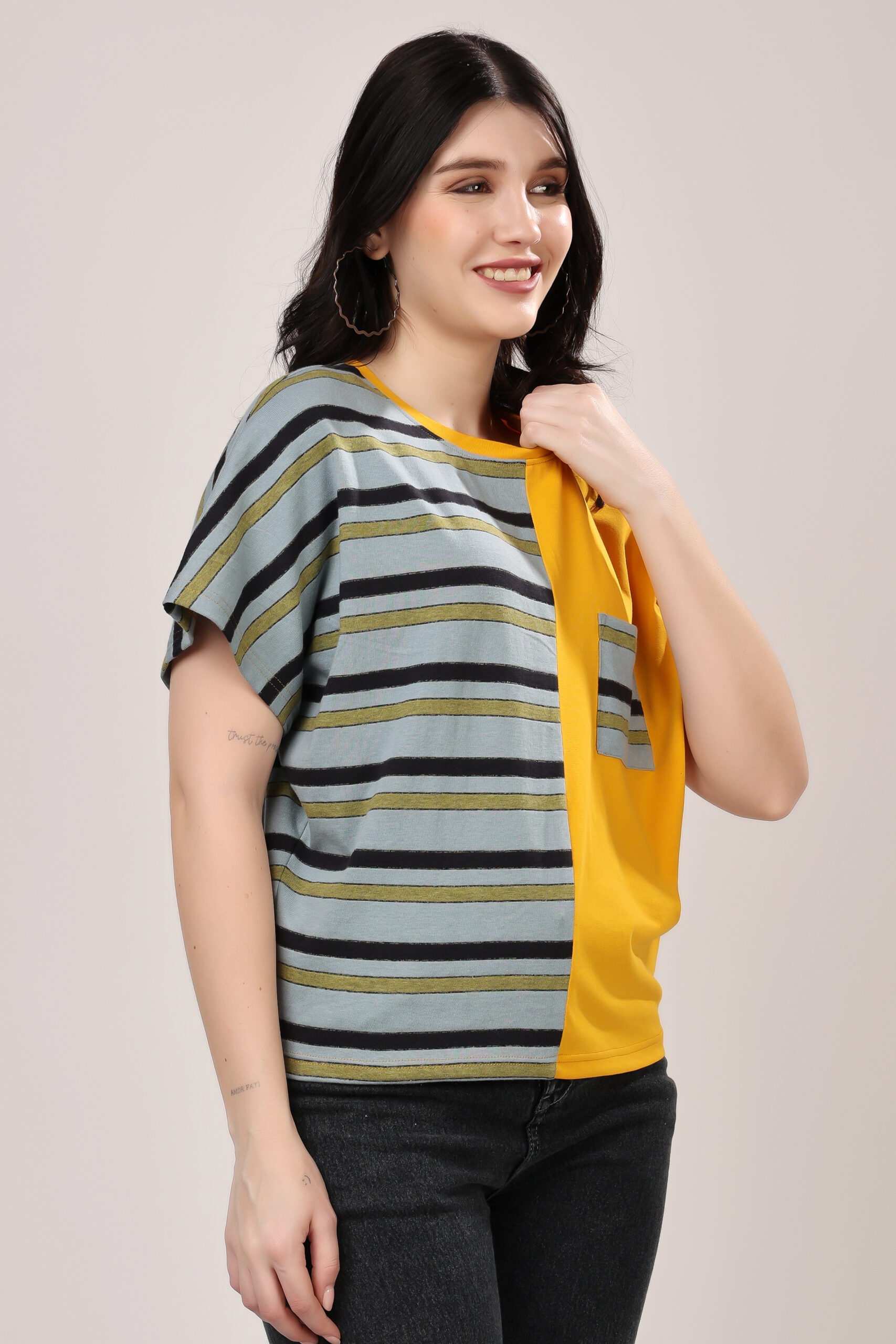 Half & Half Striped Panel T-Shirt for Women