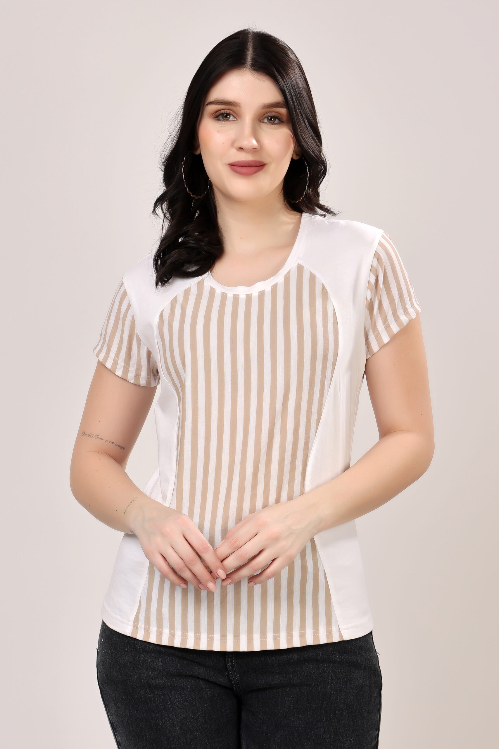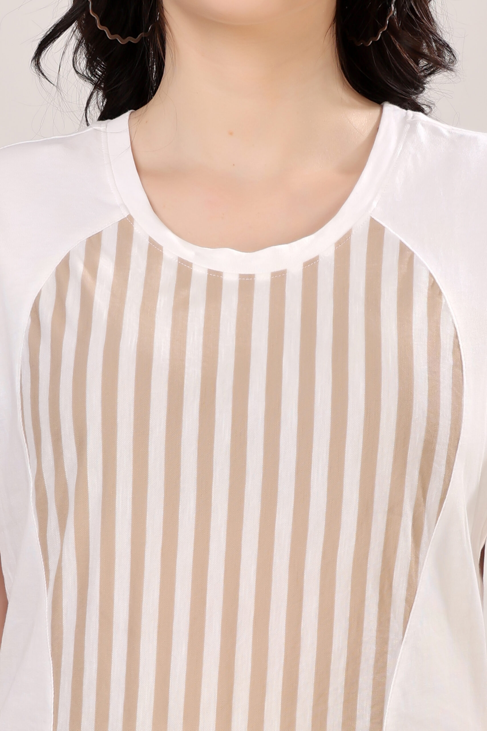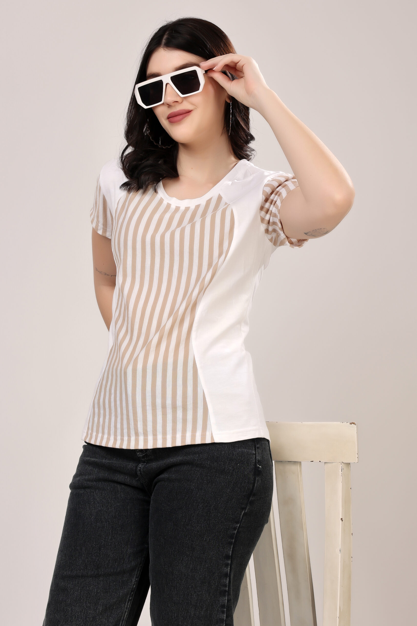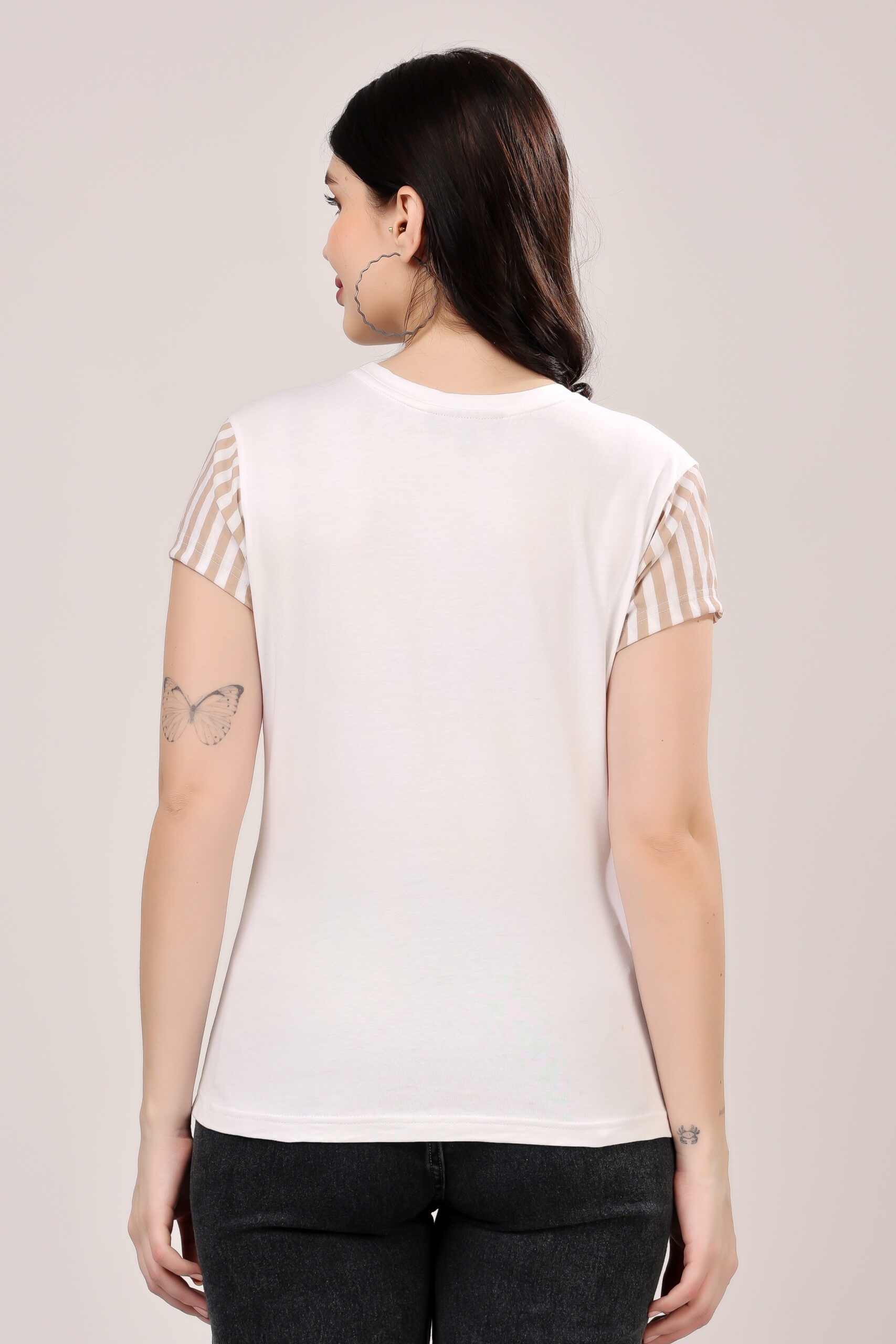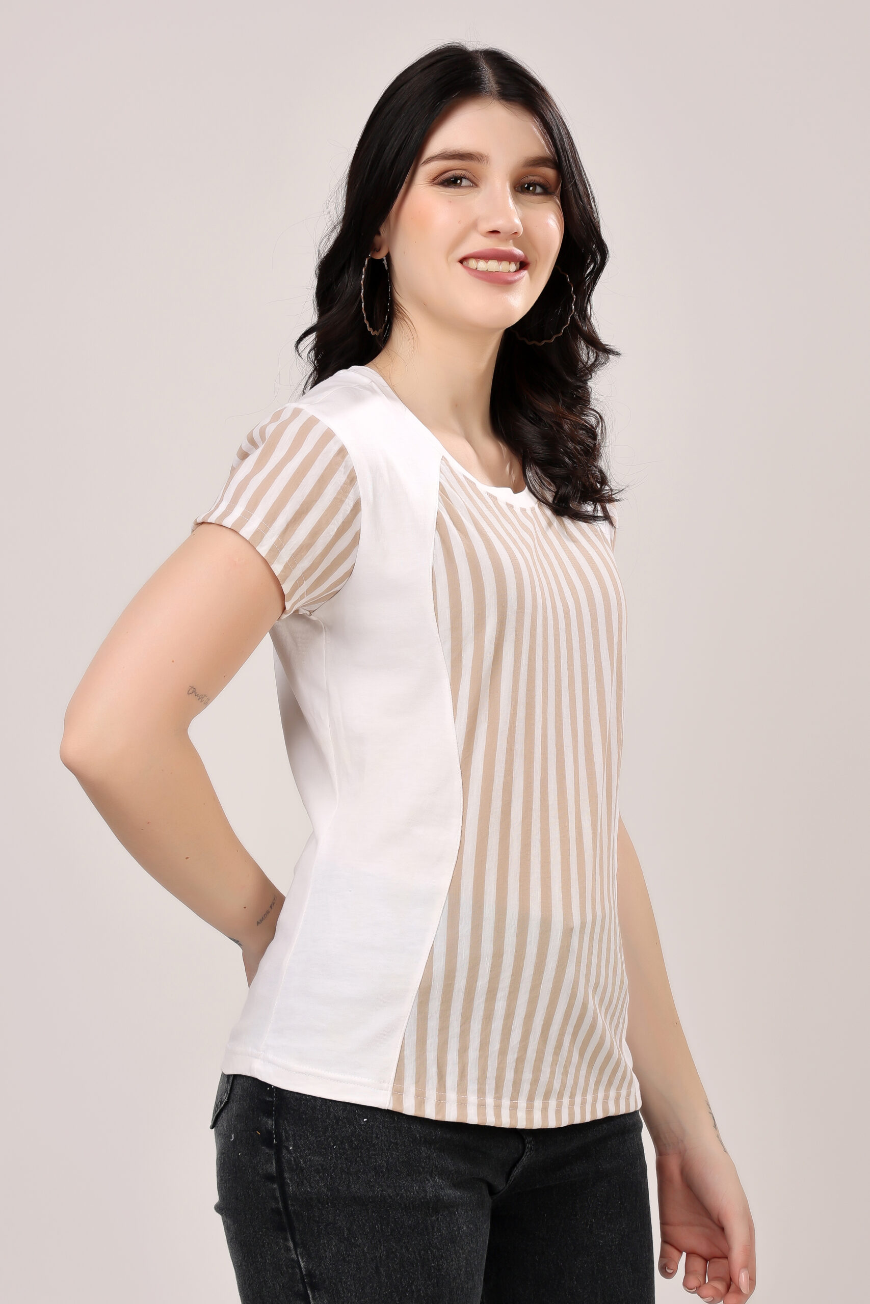 Half & Half Striped Panel T-Shirt for Women