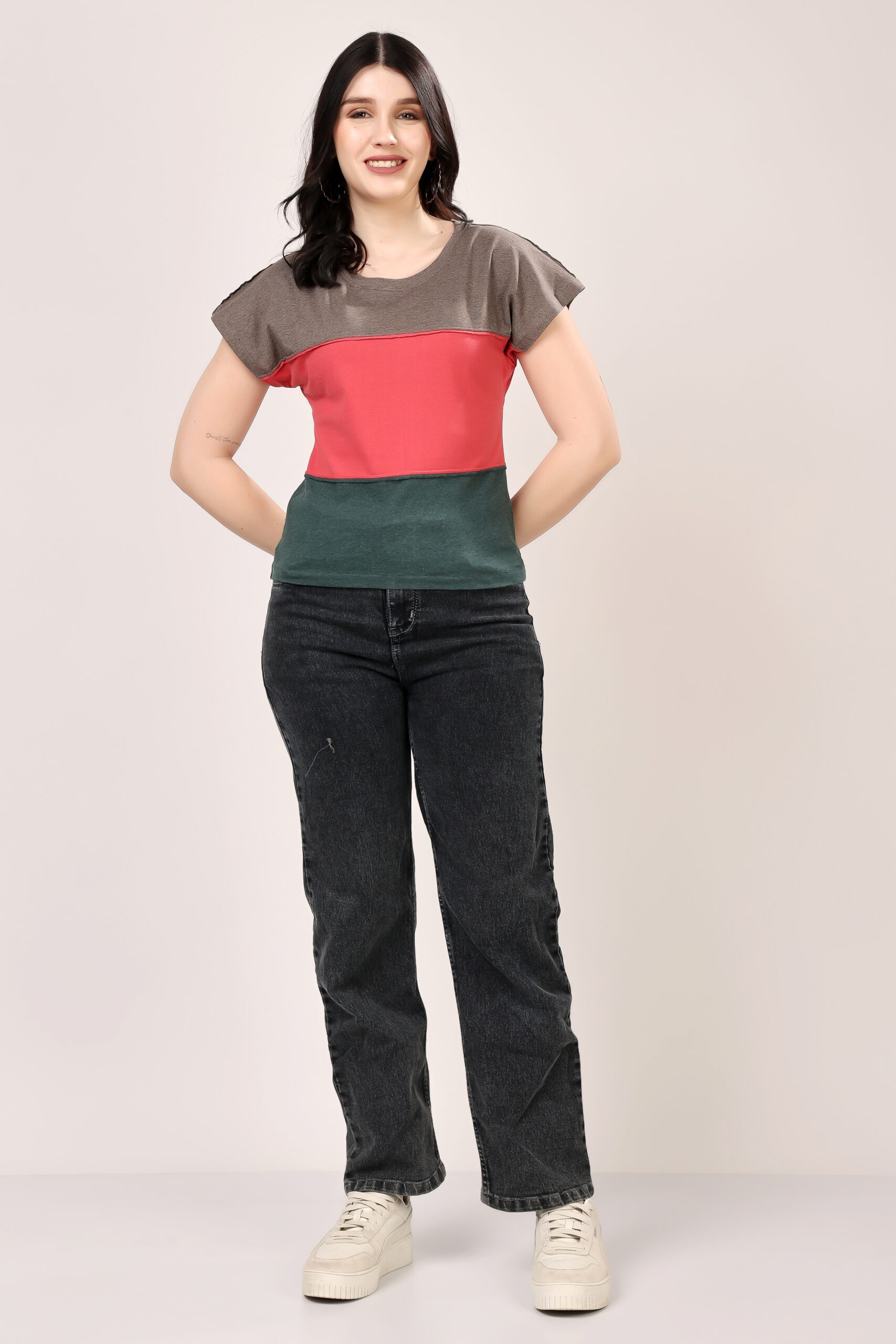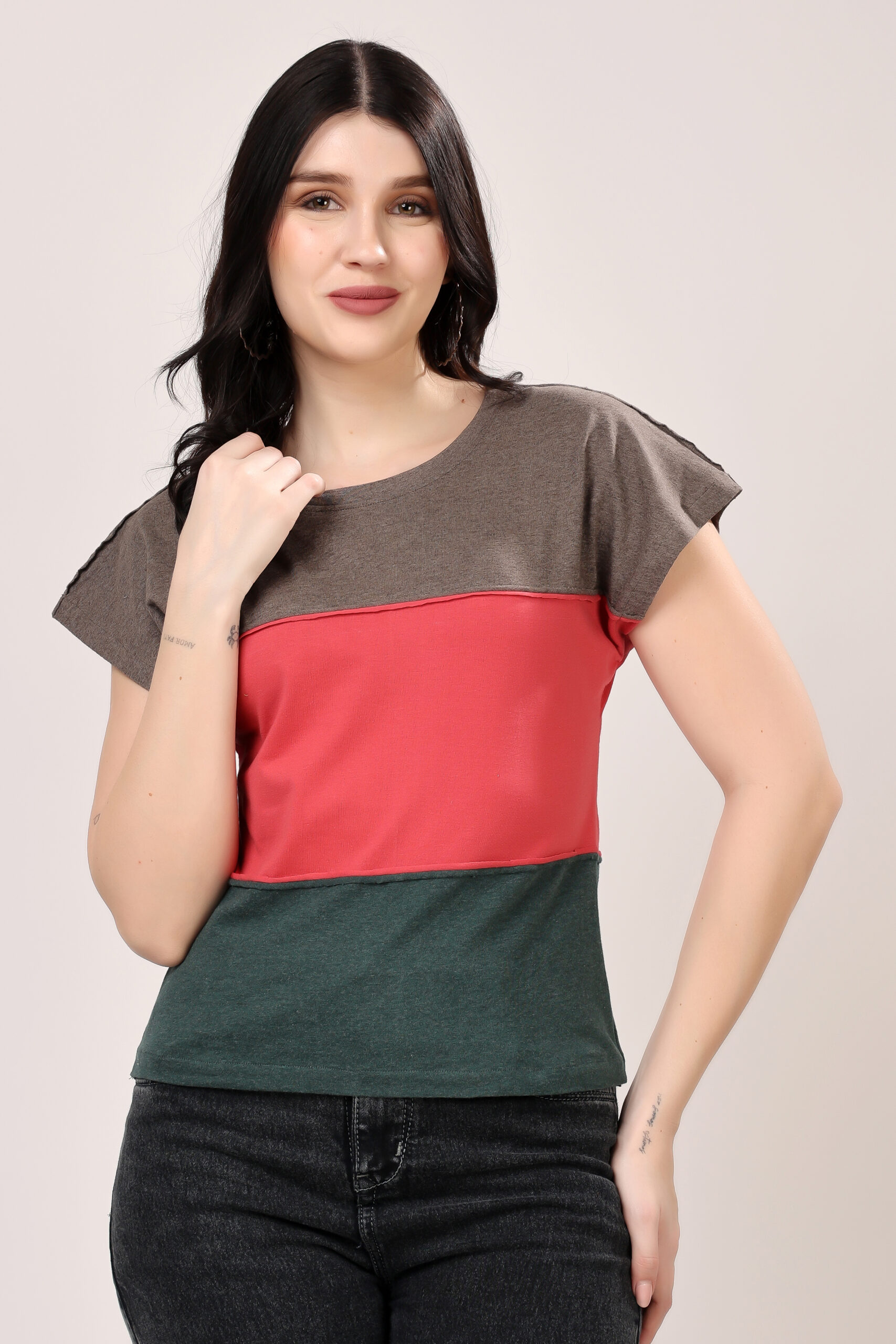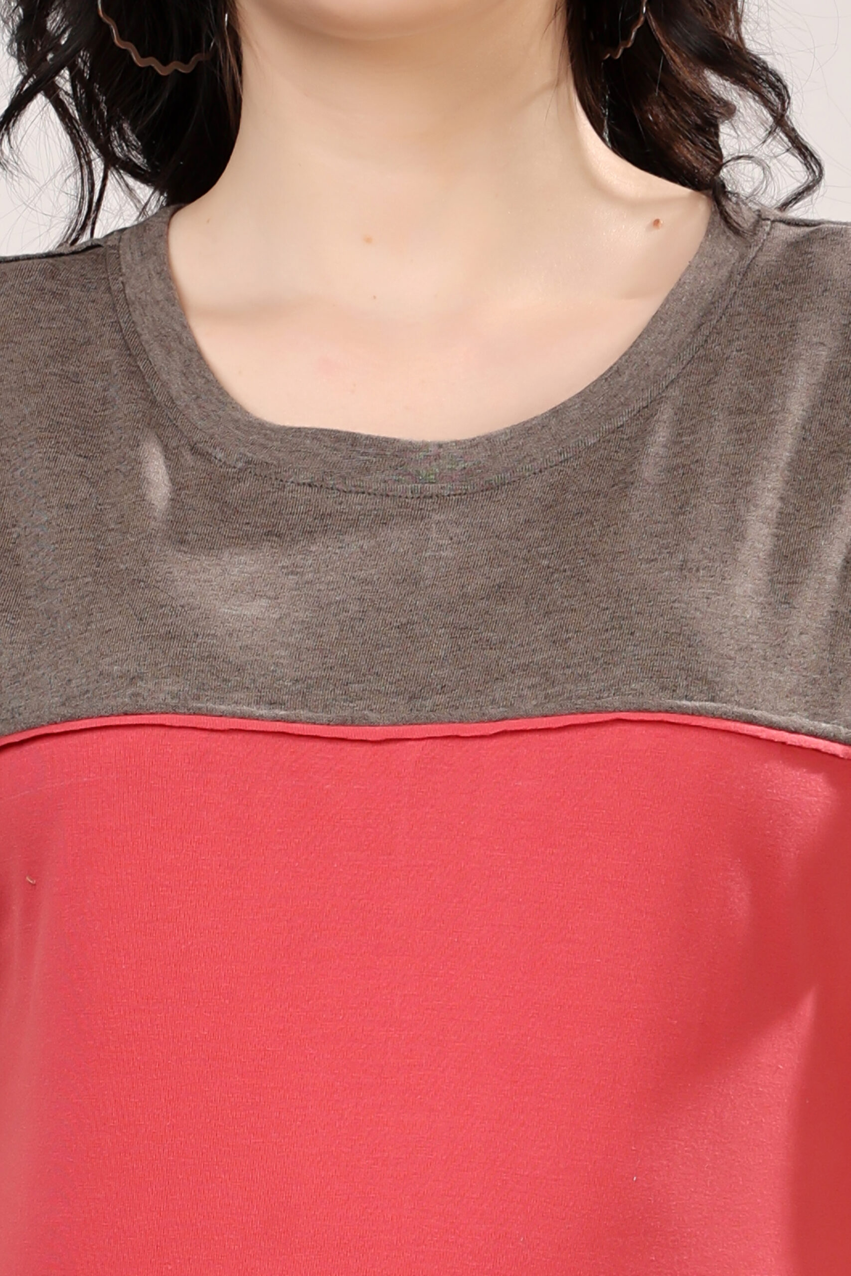 Casual Contrast Panel Jersey T-Shirt for Women Grey and Black