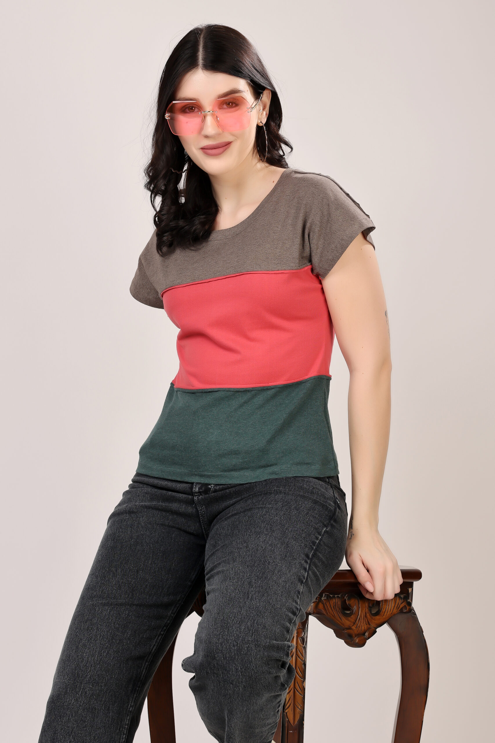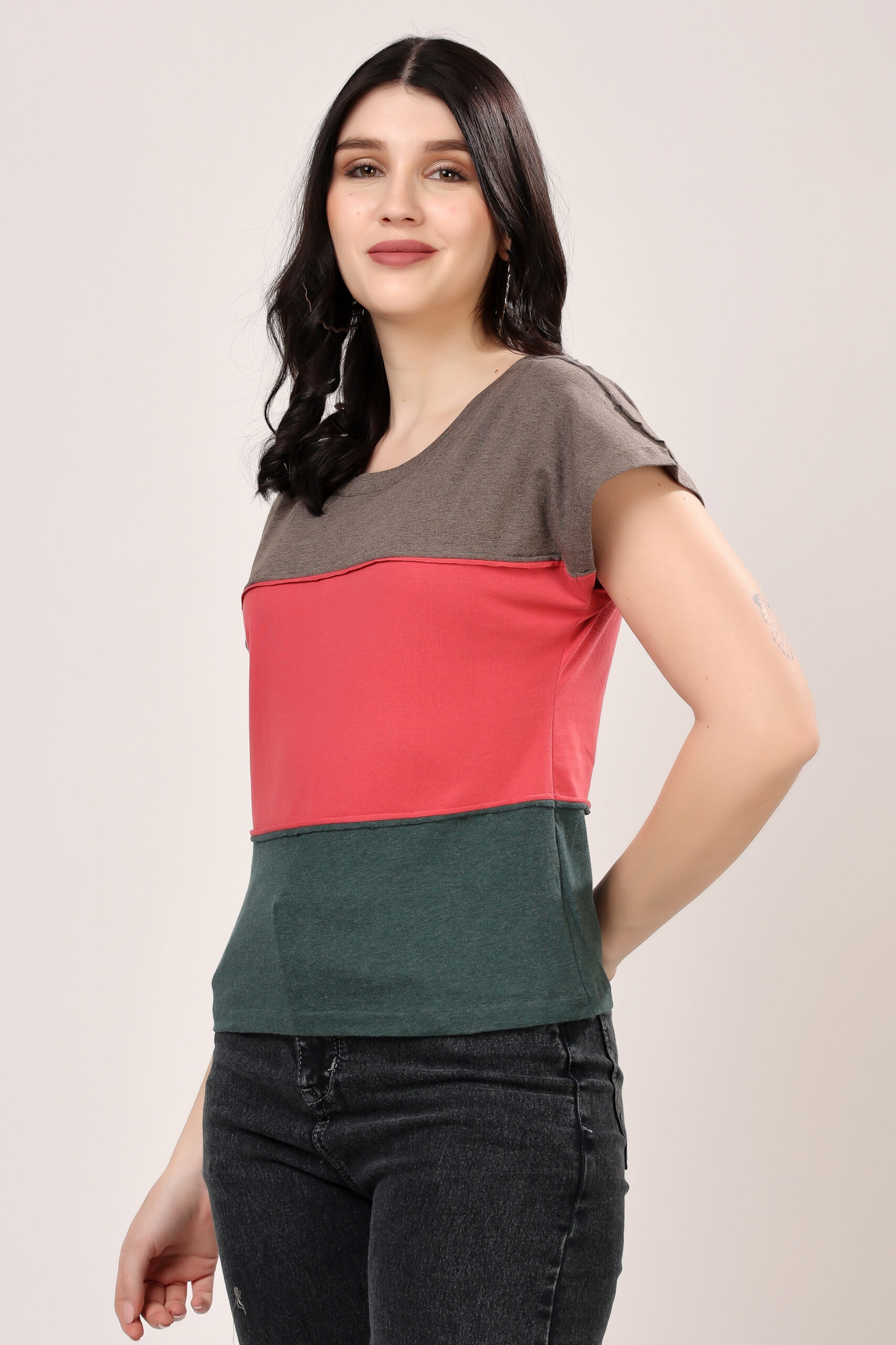 Raw Edge Colorblock T-Shirt for Women