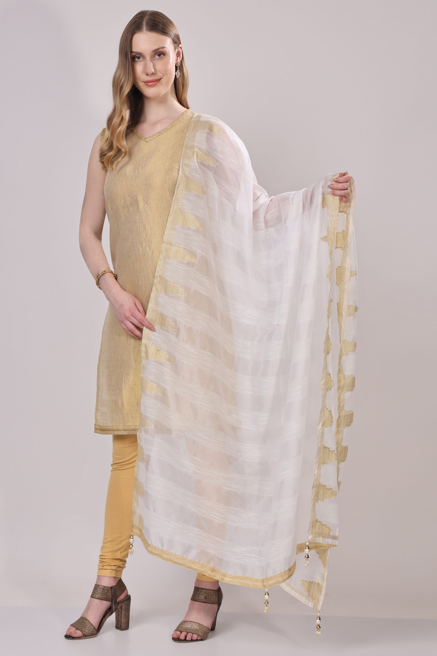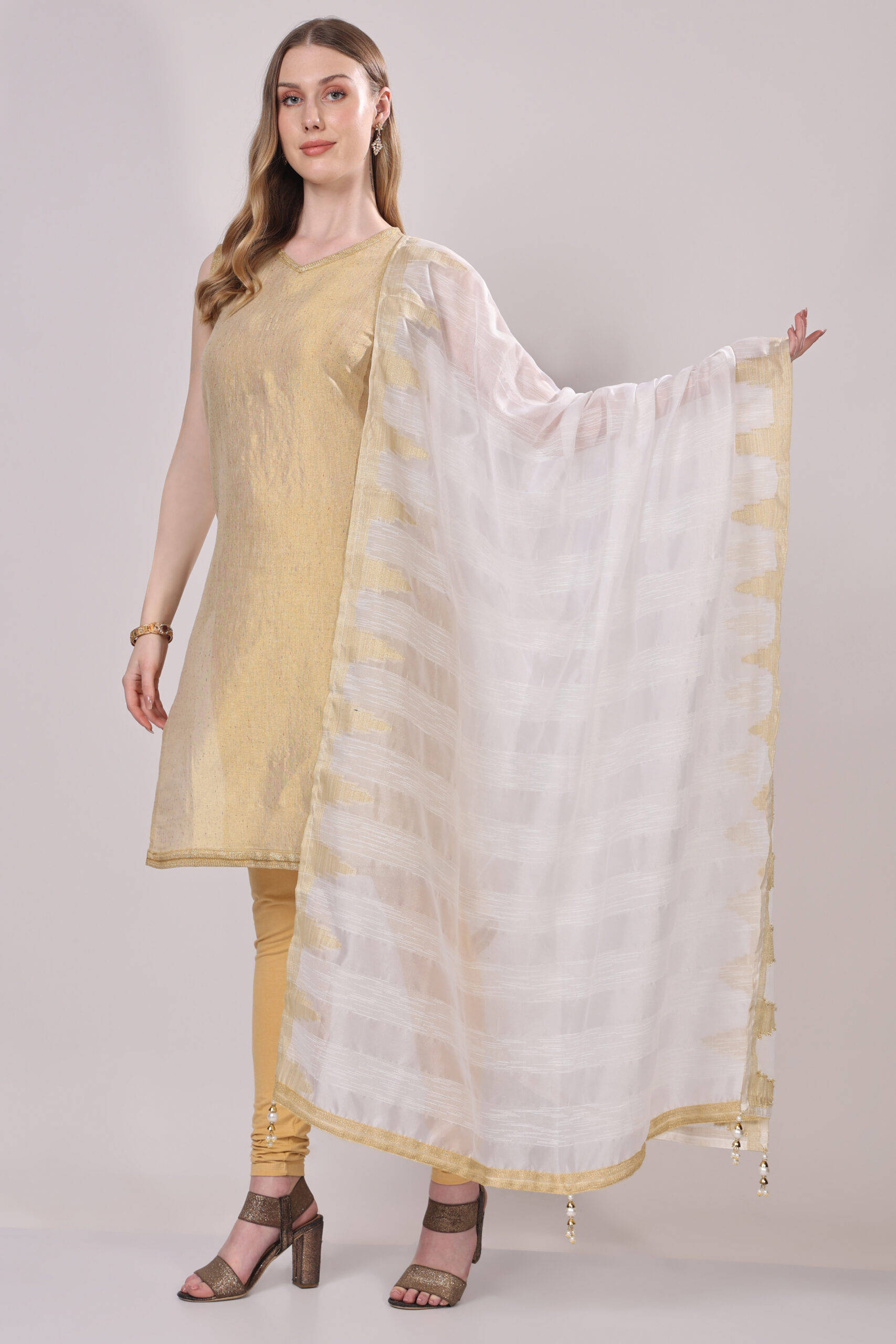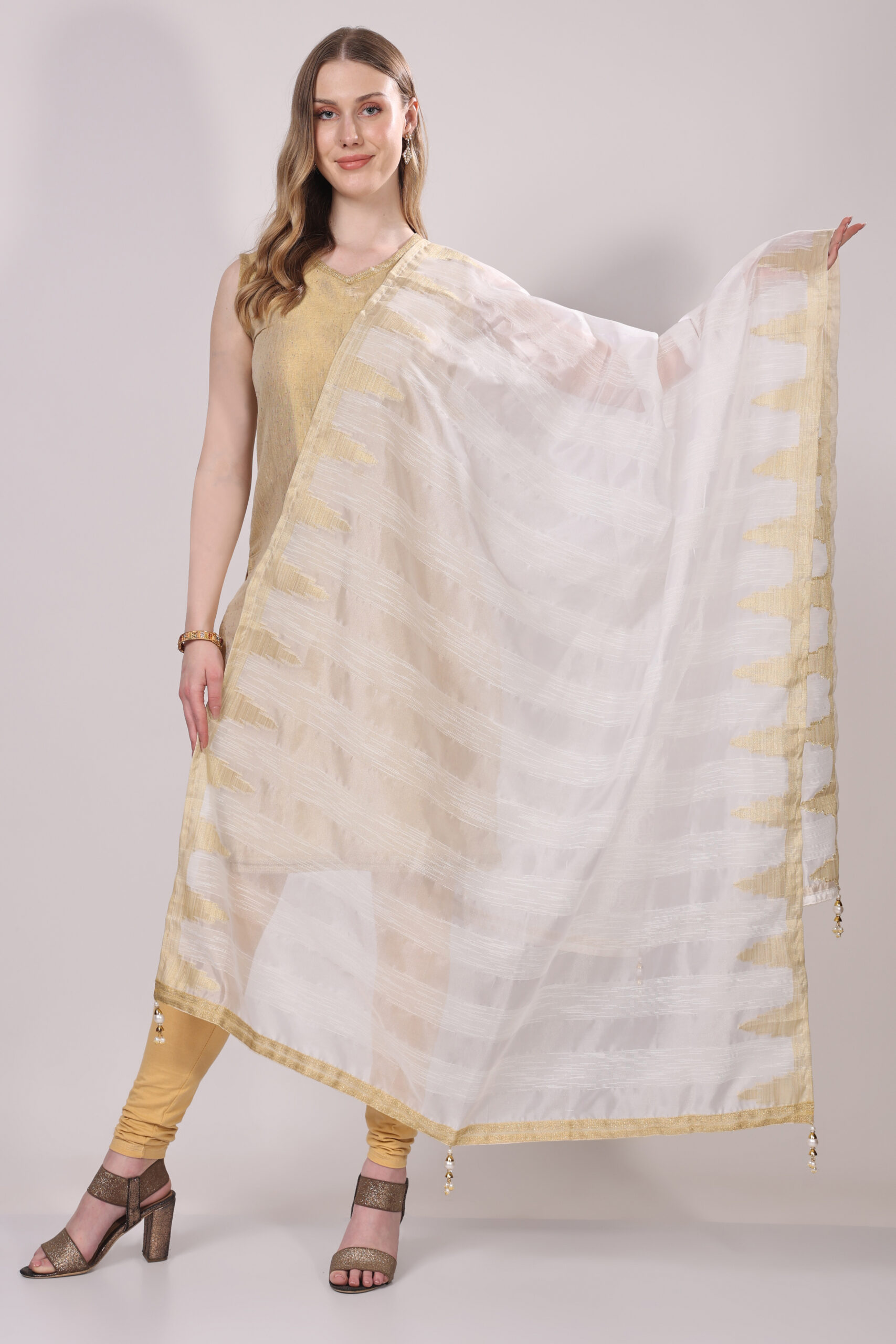 This subtly festive dupatta embodies elegance and grace, making it a refined addition to any ethnic ensemble.