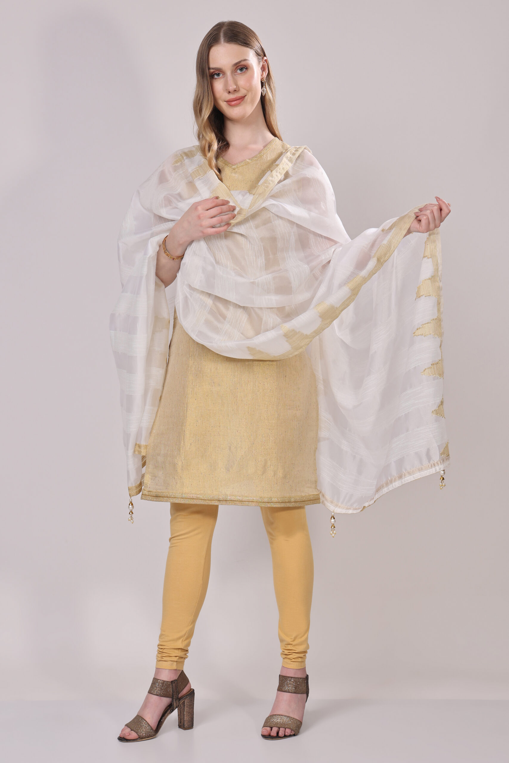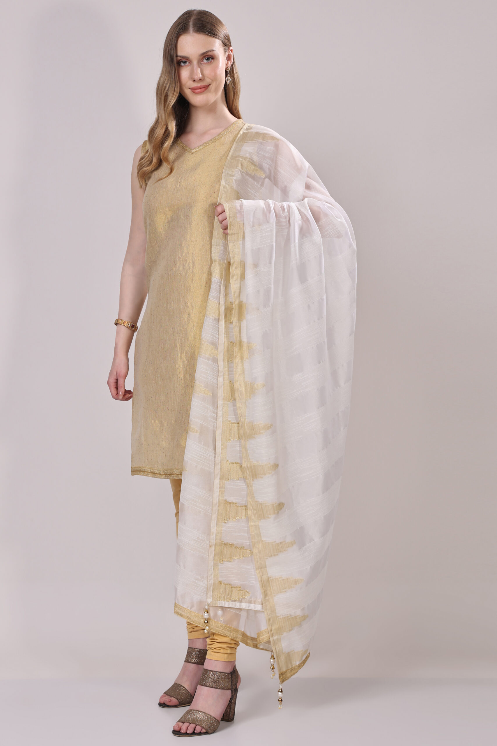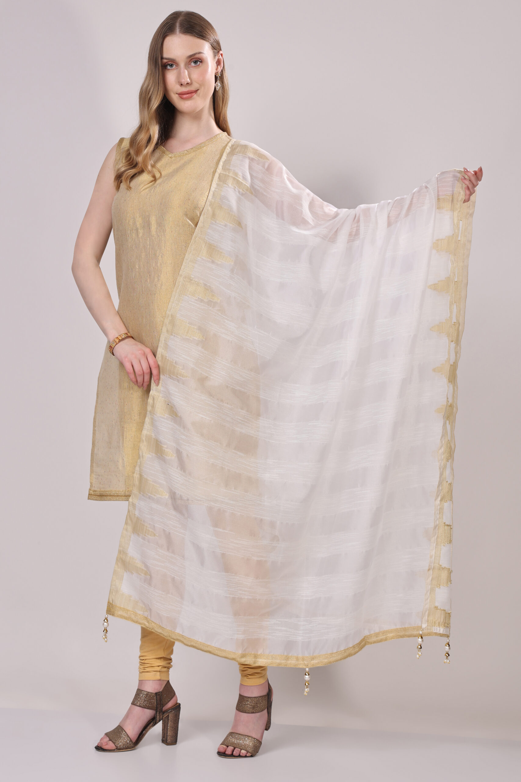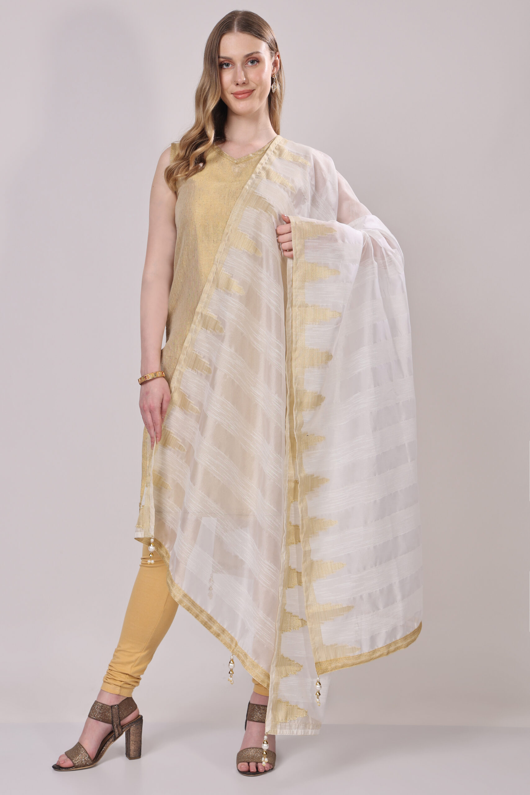 This subtly festive dupatta embodies elegance and grace, making it a refined addition to any ethnic ensemble.