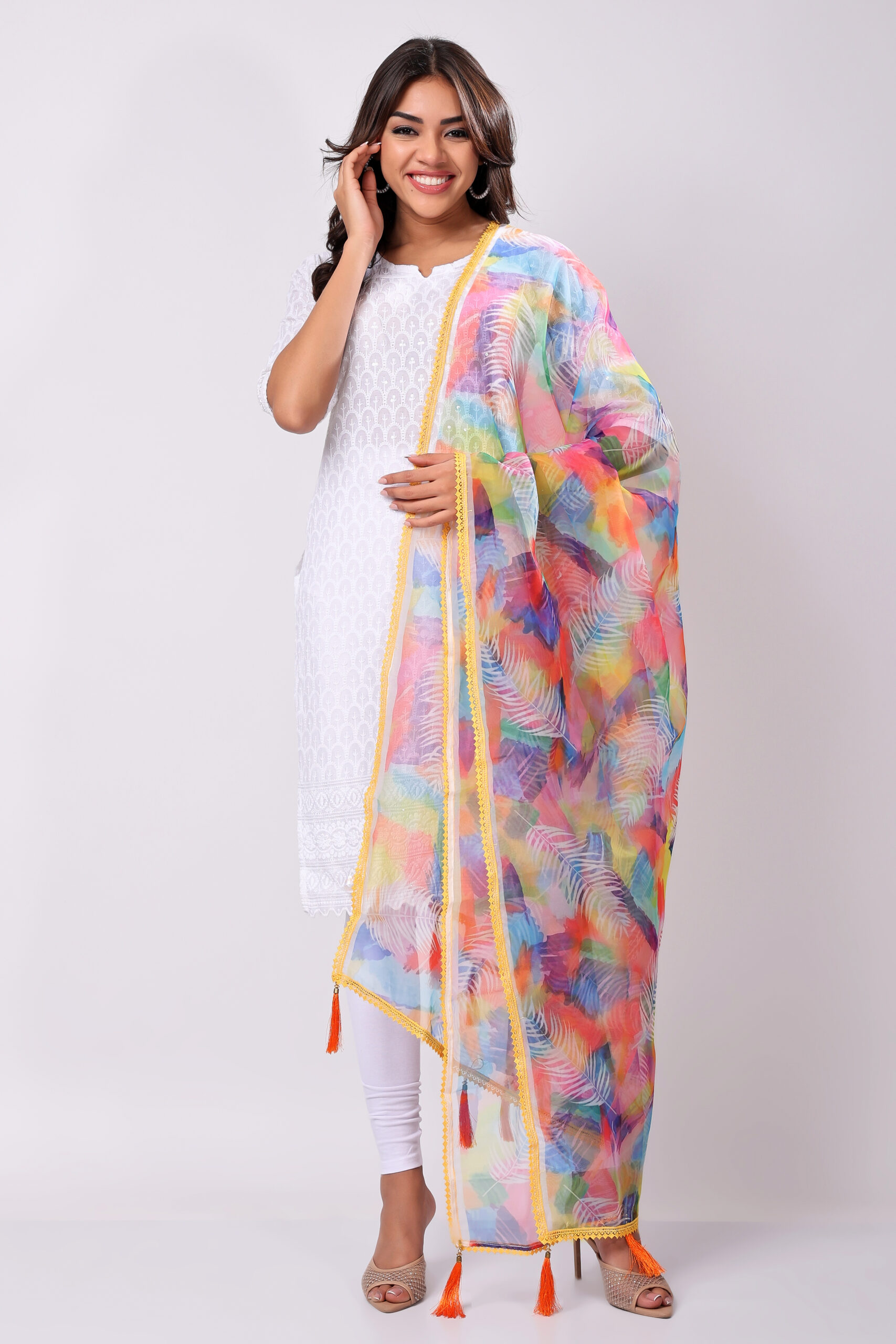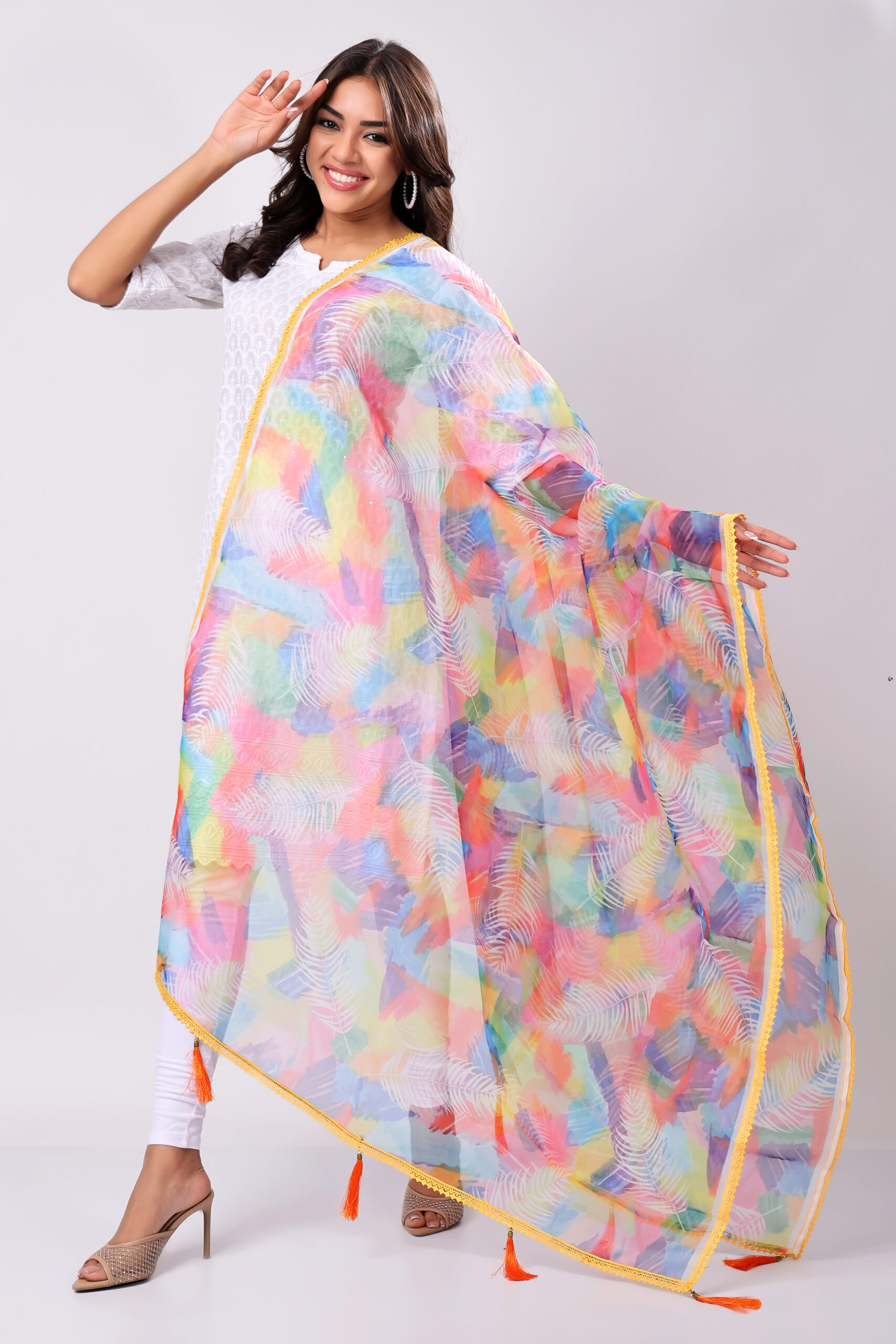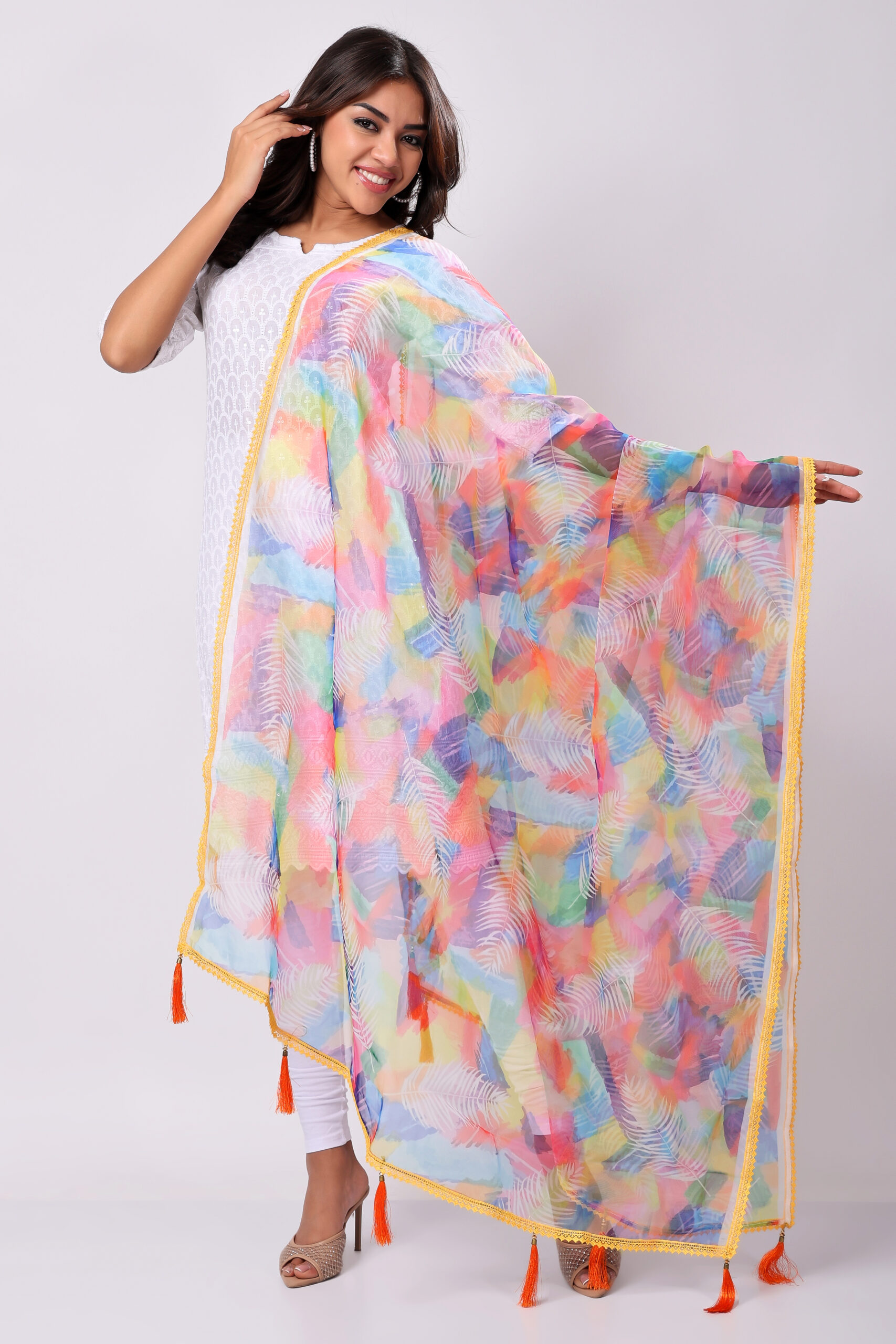 This dupatta adds a vibrant yet elegant touch to any outfit, making it a versatile must-have for every wardrobe.