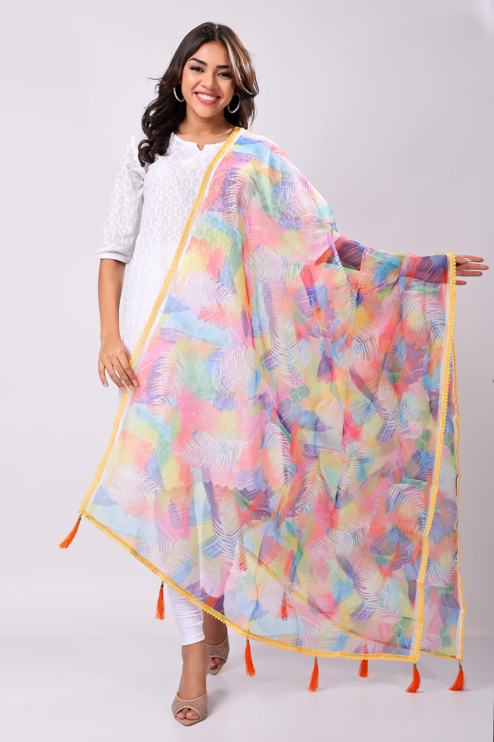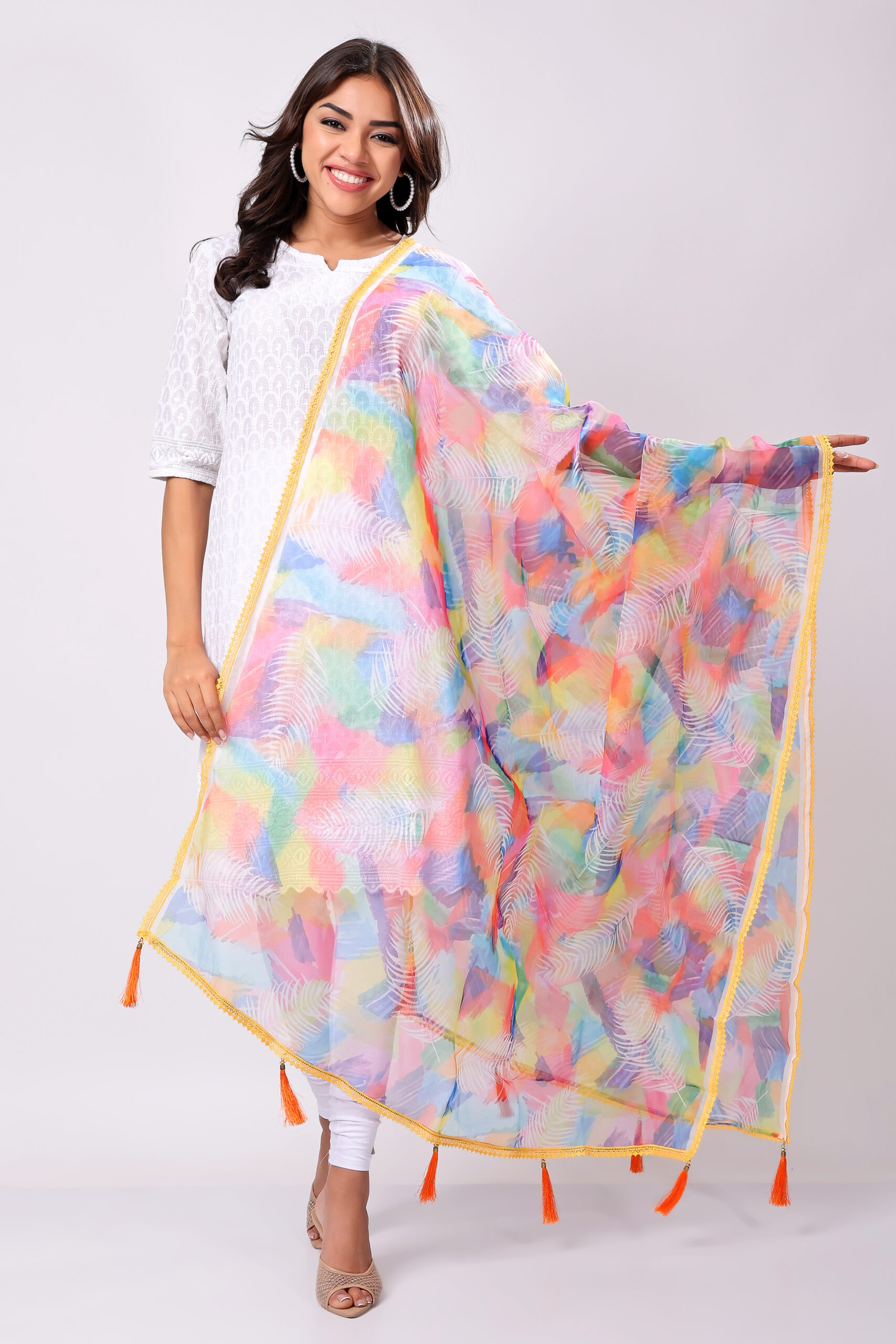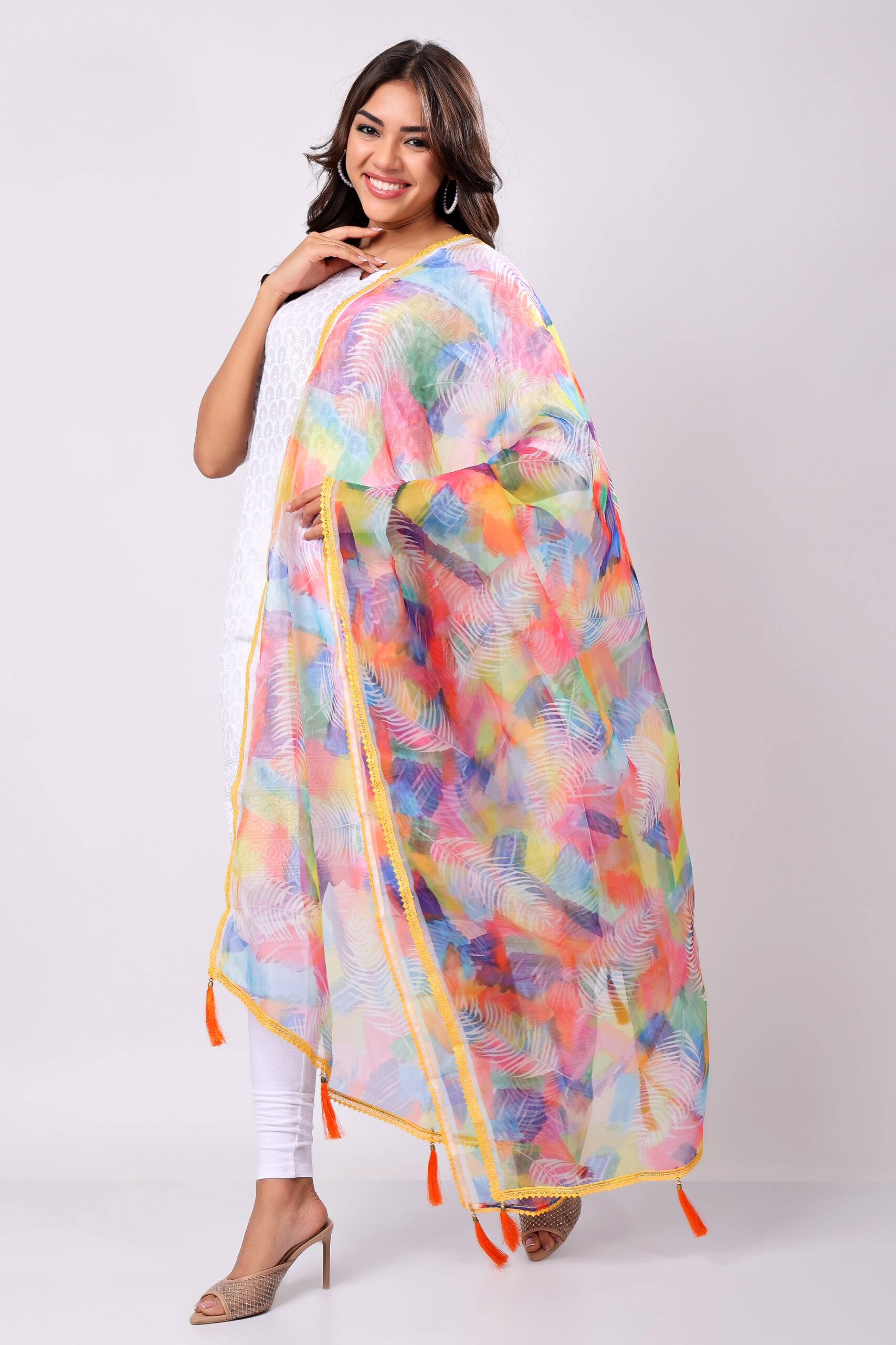 This dupatta adds a vibrant yet elegant touch to any outfit, making it a versatile must-have for every wardrobe.
